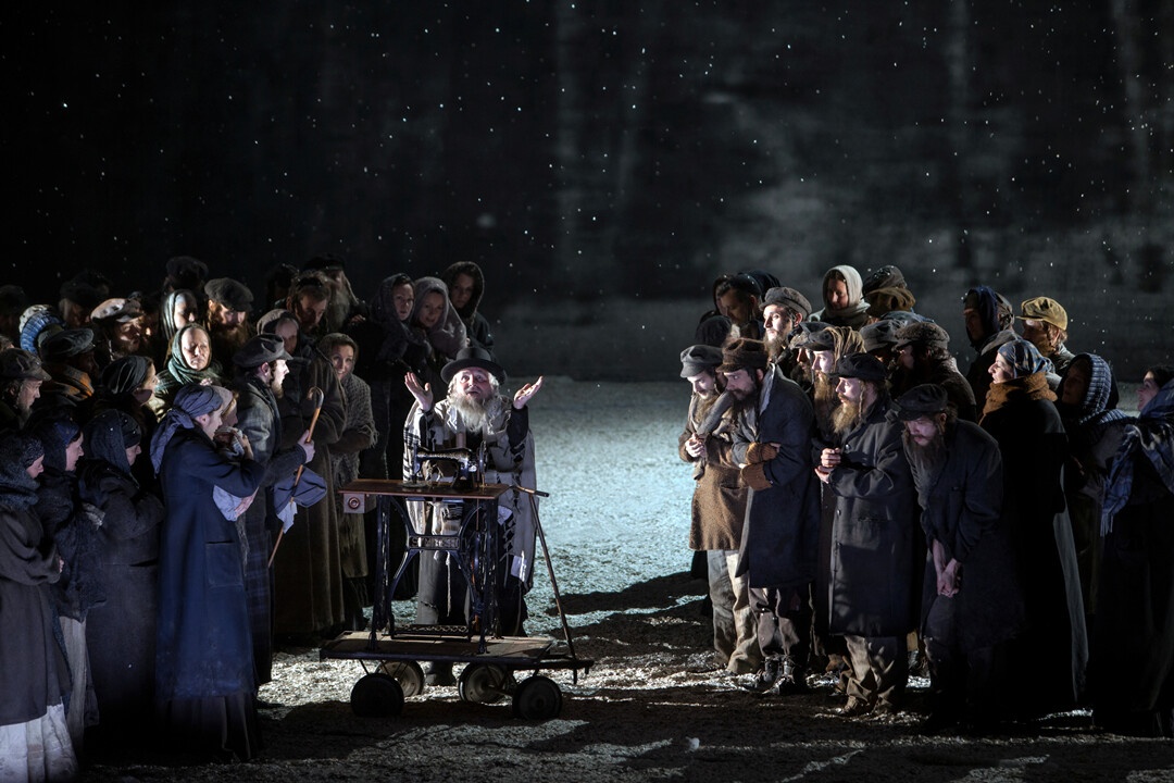 But the daughters are headstrong in matters of love. It’s not the butcher that Zeitel falls for, but a poor tailor called Motel Kamzoil. Hodel loses her heart to the family tutor Perchik, a revolutionary, while Chava chooses an intellectual, the Orthodox Christian Fyedka. Against a background of troubles and celebrations, fear of pogroms targeting the village, Golde’s worries about the children and Tevye’s struggle for his daily bread and true piety, the girls call time-honoured traditions into question, posing tough challenges for their big-hearted father. Tevye strives to do the right thing and pardons all their crazy ideas. Well, not quite all. There are limits to his magnanimity, set by faith and tradition – for the sake of which he disowns his daughter Chava. A short time later a pogrom happens, the villagers scatter in all directions, the family is torn apart. Tevye, his kids, friends and neighbours leave Anatevka, their home, for good.