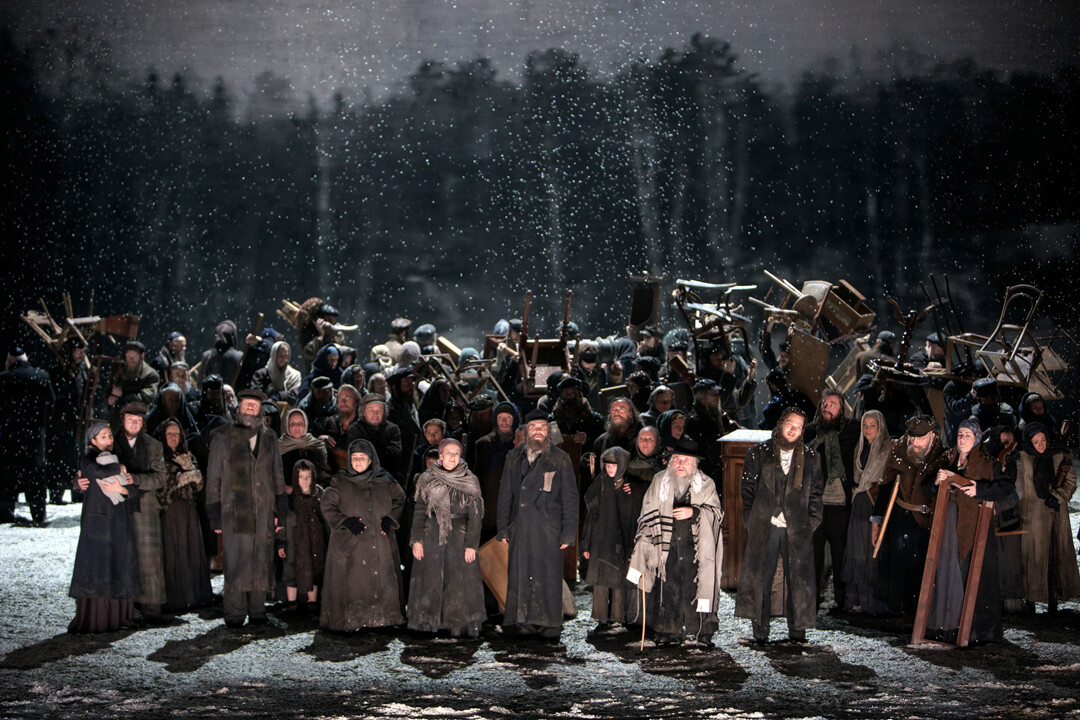 But the daughters are headstrong in matters of love. It’s not the butcher that Zeitel falls for, but a poor tailor called Motel Kamzoil. Hodel loses her heart to the family tutor Perchik, a revolutionary, while Chava chooses an intellectual, the Orthodox Christian Fyedka. Against a background of troubles and celebrations, fear of pogroms targeting the village, Golde’s worries about the children and Tevye’s struggle for his daily bread and true piety, the girls call time-honoured traditions into question, posing tough challenges for their big-hearted father. Tevye strives to do the right thing and pardons all their crazy ideas. Well, not quite all. There are limits to his magnanimity, set by faith and tradition – for the sake of which he disowns his daughter Chava. A short time later a pogrom happens, the villagers scatter in all directions, the family is torn apart. Tevye, his kids, friends and neighbours leave Anatevka, their home, for good.