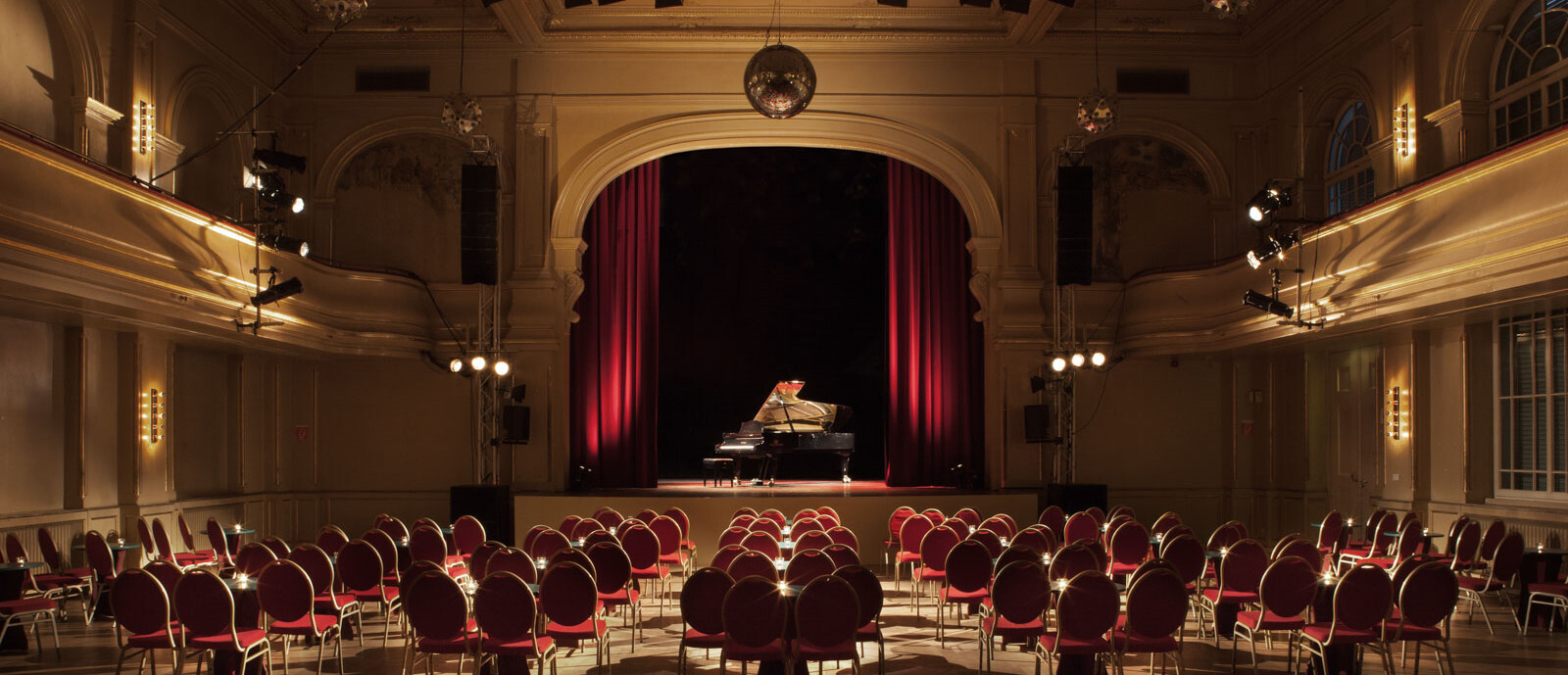 Die Bühne des Saals ist jedoch nur über Stufen erreichbar.
