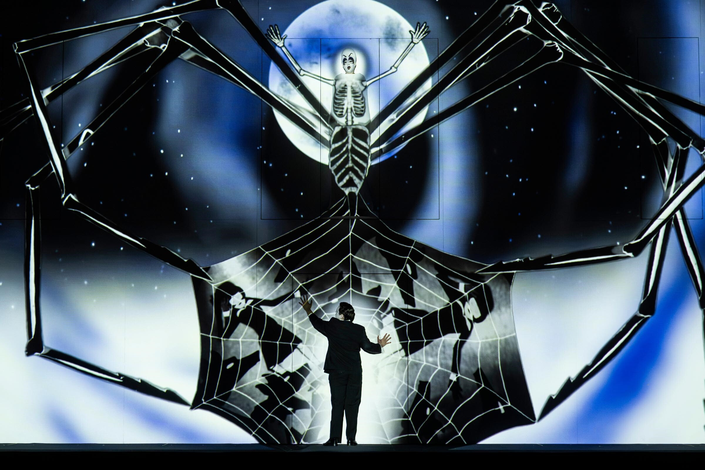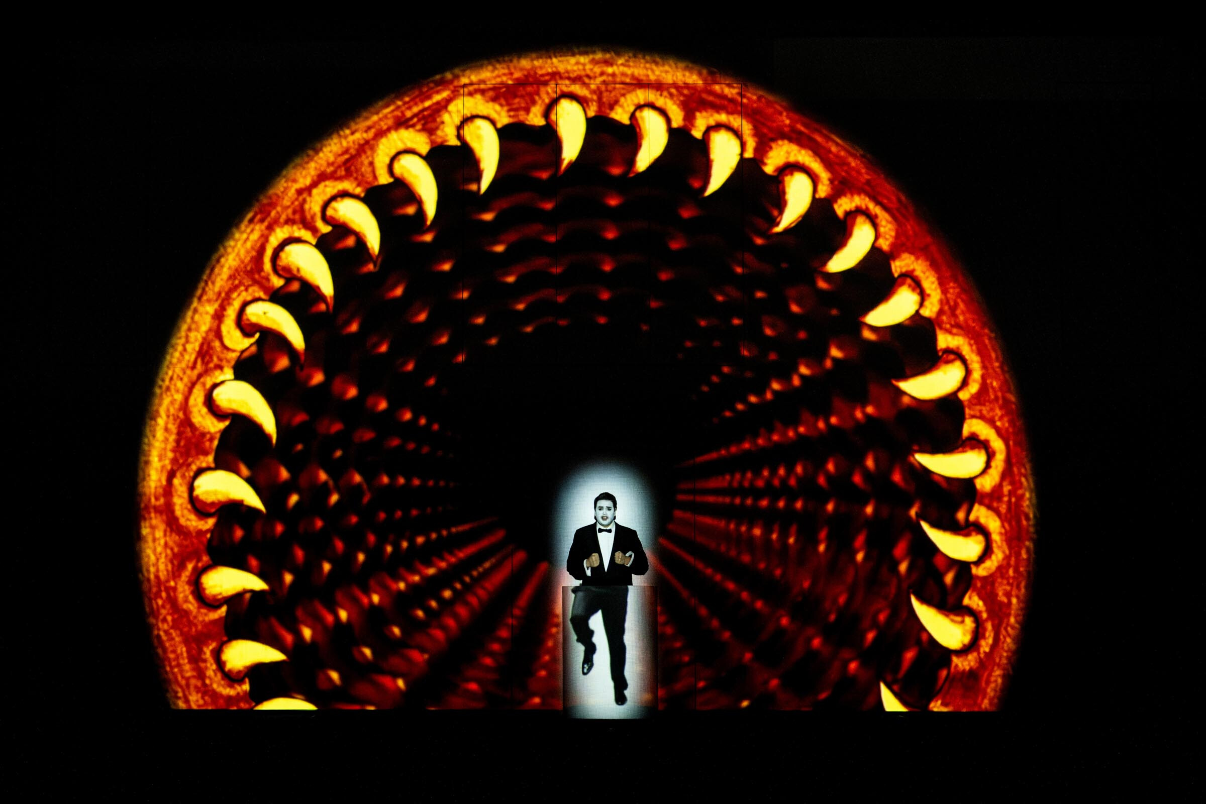 Barrie Kosky Diese Konzentration auf die Bilder macht es möglich, dass jeder Zuschauer die Show auf seine ganz eigene Weise erleben kann: als ein magisches, lebendiges Märchenbuch, als eine merkwürdige, zeitgenössische Meditation über den Stummfilm, einen singenden Stummfilm gewissermaßen, oder als ein lebendig gewordenes Gemälde. Im Grunde haben wir ja an die hundert Bühnenbilder, in denen Dinge passieren, die auf einer Theaterbühne normalerweise gar nicht möglich sind: fliegende Elefanten, herumsausende Flöten mit Notenschweif, Show-Girl-Glöckchen … Wir fliegen zu den Sternen und fahren mit dem Aufzug in die Hölle – und das alles innerhalb weniger Minuten. Neben all den Animationen gibt es in unserer Inszenierung aber immer wieder auch Momente, in denen die Sänger in einem einfachen weißen Spot stehen. Und plötzlich sind da nur noch die Musik, der Text und die Figur. Gerade die Einfachheit macht diese Momente zu den vielleicht berührendsten des Abends.