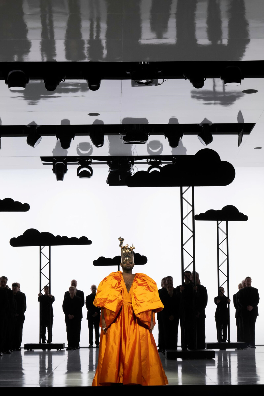 John Holiday, der Countertenor, übernimmt mit wenigen Noten den Raum. Seine ruhige Präsenz und natürliche Eleganz lassen den von sich selbst berauschten Pharao am Ende als Sympathiefigur erscheinen.