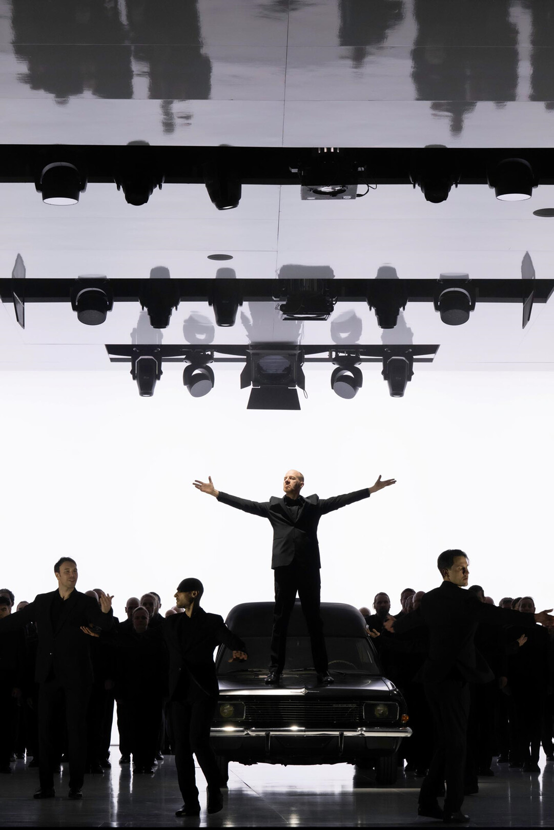 Barrie Kosky: Das Stück besteht aus verschiedenen Szenen, in denen allerdings sehr offen ist, wie man sie inszenieren soll. Das bedeutet, Philip Glass gibt uns vor, dass zum Beispiel die erste Szene die Beerdigung von seinem Vater ist, aber dann hören wir neuneinhalb Minuten Musik, ohne weitere konkrete Hinweise zu bekommen. Es folgt die nächste Szene, die Krönung von Echnaton: Nichts ist da, außer, dass Echnaton eben der neue König wird – 10 Minuten Musik. Dann kommt ein Trio mit seiner Mutter und seiner Frau, das schlicht als »The Window of Appearances« betitelt ist – wieder keine Regieanweisungen. Es kommt zu einer Szene namens »The Temple«, wo die Zerstörung der alten Ordnung dargestellt wird, zu einem Liebesduett zwischen Echnaton und Nofretete, zu einem Tanz etc. Diese wenigen Vorgaben geben der Regie viel Freiheit und sind für mich eigentlich wunderbar. Fatal wird es aber, wenn man diese Szenen mit pseudorealistischen Bildern vollpackt. Das nimmt alle Kraft aus der Musik. Man muss dem Publikum bei Glass’ Opern zeigen, dass die Musik der Motor und der Auslöser all dieser Sachen ist. Ich habe mich entschlossen, eine Serie von abstrakten Bildern zu erstellen. Meine Inszenierung ist nicht spezifisch, sie ist vielleicht die abstrakteste Inszenierung, die ich je gemacht habe. Es fängt an mit dem Begräbnisritual, das im Alten Ägypten von großer Bedeutung war. Ich glaube, dass es für Glass sehr wichtig war, dass der Tod der Ausgangspunkt seines Stückes ist. In meiner Inszenierung sehen wir dann in sehr einfachen Bildern die Beziehung eines Mannes zu seiner Mutter, zu seiner Frau und auch zum Volk.