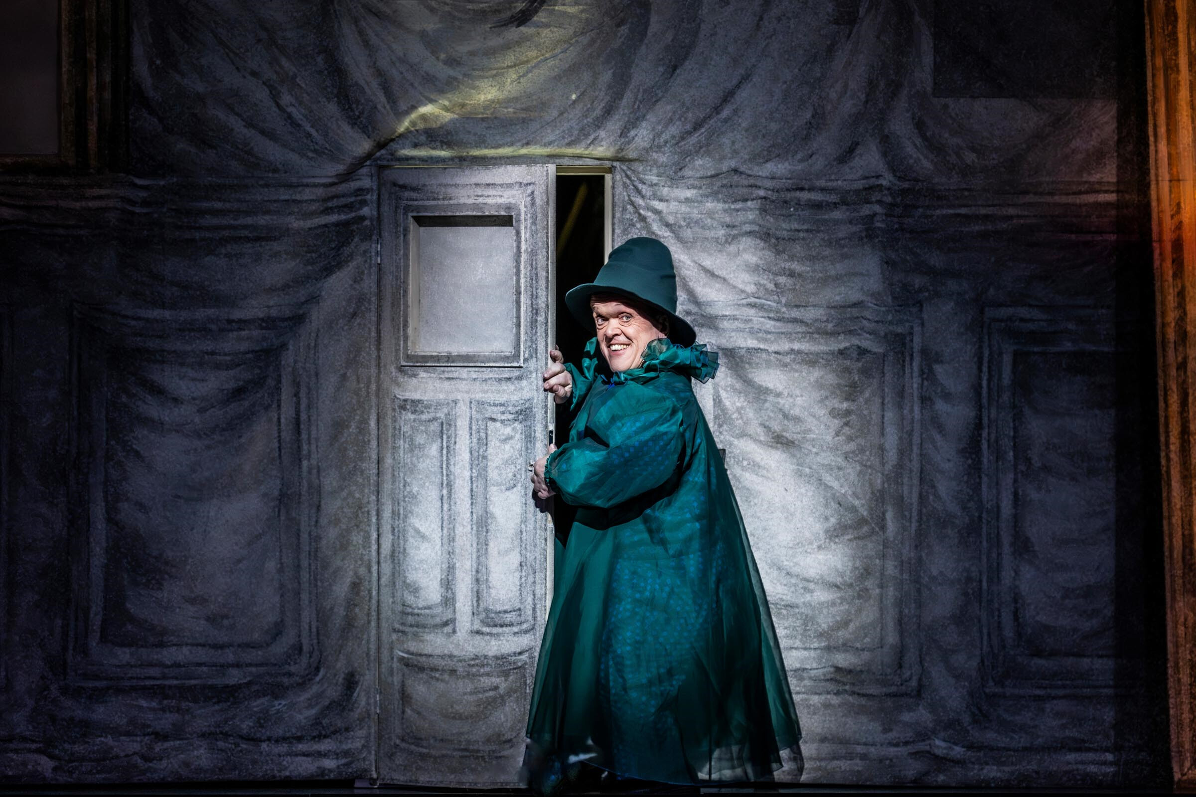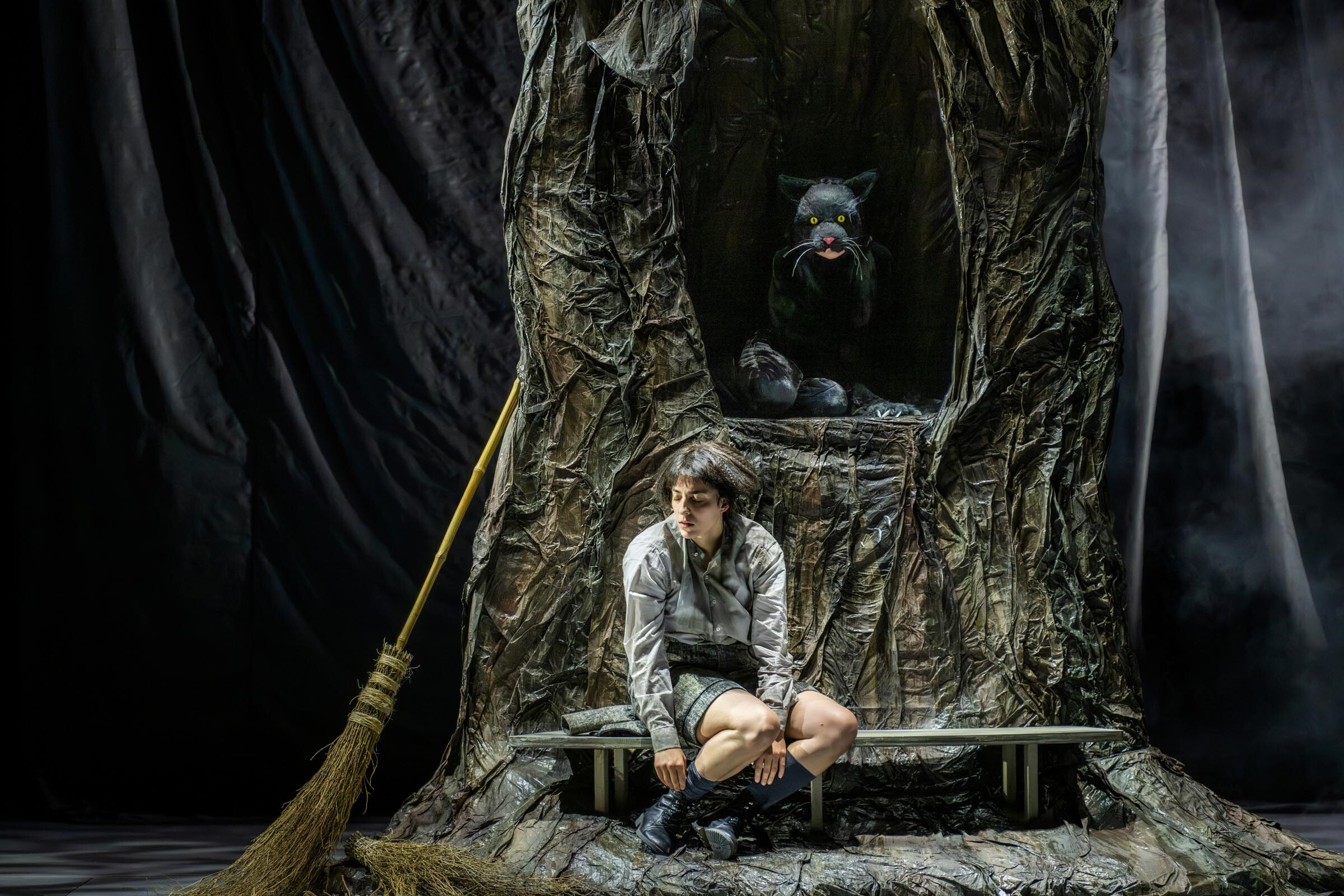 Yi-Chen Lin: Diese Rolle ist so vielseitig wie kaum eine andere. Man weiß bei dieser Figur überhaupt nicht, woran man ist. Einmal ist die Hexe richtig nett, dann schlägt ihre Haltung plötzlich komplett um, nur, um im nächsten Satz wieder zuckersüß zu klingen. Dieses Hin und Her, das Wechselhafte dieser Figur, macht sie so unberechenbar und angsteinflößend. Sängerisch liegt darin natürlich eine große Herausforderung, insbesondere, wenn auch noch Bewegung, Spiel und Choreografie dazu kommen. Die Knusperhexe ist eine Figur, die sehr viel in sich trägt. Man weiß nicht, was sie schon alles erlebt hat – vielleicht will man das auch gar nicht wissen – aber sie kämpft sehr mit sich und hält sich ja auch wirklich für eine Nette. Nur hat sie eben diesen unwiderstehlichen Drang, Kinder zu backen und zu fressen. Sie steckt die ganze Zeit über in einem Zwiespalt, aus dem sie nicht entkommt. Außerdem scheint sie sehr schlecht zu sehen und zu hören, das alles zusammen ist keine gute Kombination!