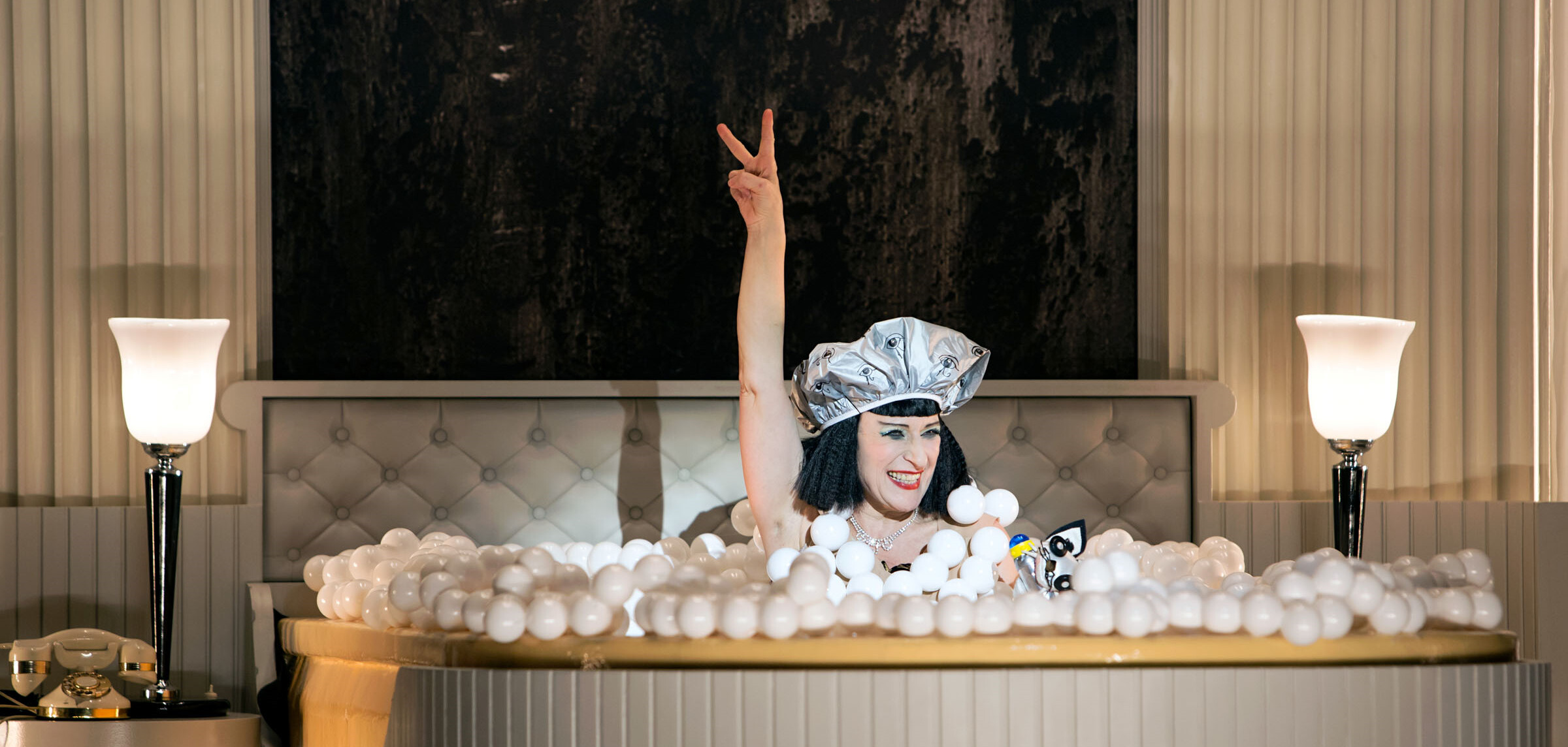 Barrie Kosky: Das ist ein weiterer entscheidender Punkt bei der Stückwahl: Mit welchen Künstlern arbeiten wir? Die Perlen der Cleopatra wurde explizit für Fritzi Massary geschaffen. Mit Dagmar Manzel, die nach Eine Frau nun in ihrer zweiten »Massary-Partie« auf der Bühne der Komischen Oper Berlin zu erleben ist, haben wir die ideale, in meinen Augen einzig mögliche, Besetzung gefunden. Sie ist eine seelenverwandte Schwester der Massary und hat zugleich in keinem Moment die Absicht, wie Fritzi Massary zu singen oder zu spielen. Zu guter Letzt war das Stück seit seiner Berlin-Premiere 1924 fast nicht zu erleben. Das heißt, wir haben es nach über 90 Jahren mit einer kleinen Wiederentdeckung des Werks zu tun. Fast noch deutlicher als Paul Abrahams Ball im Savoy steht es für den Übergang der Wiener zur Berliner Operette.