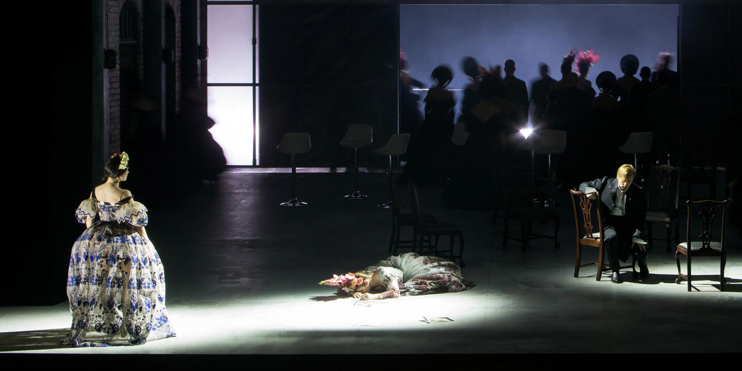 Ainārs Rubiķis: Ja, alle Figuren geraten in die Tragödie. Violetta steht natürlich im Zentrum, aber mit ihr sind Vater und Sohn im Konflikt verbunden – und der ist nicht als eindeutig lösbar zu beschreiben. Ich kann das Handeln des alten Germont sehr gut nachvollziehen; er versucht, seinen beiden Kindern, Alfredo und seiner Tochter, ein guter Vater zu sein. Und wenn er zum ersten Mal seinen Sohn wiedertrifft, sagt er: »Oh! Du leidest!«, aber seine Melodielinie verblasst leise. Unvermittelt kommt der Wechsel ins Forte und er fügt hinzu: »Nimm dein Leben in die Hand!« Das kommt ganz plötzlich, militärisch, fast perfekt aristokratisch: »Männer weinen nicht«. Das ist natürlich völlig falsch, aber er fordert Härte des Sohnes gegen sich selbst, unter Berufung auf die Tochter bzw. Schwester. Zuletzt erkennt der Vater, dass er die Liebe und die Beziehung zwischen zwei Menschen zerstört hat und dadurch nicht nur Violetta, sondern auch seinen Sohn verloren hat. Er ist letztlich ebenso ein Getriebener der Umstände …