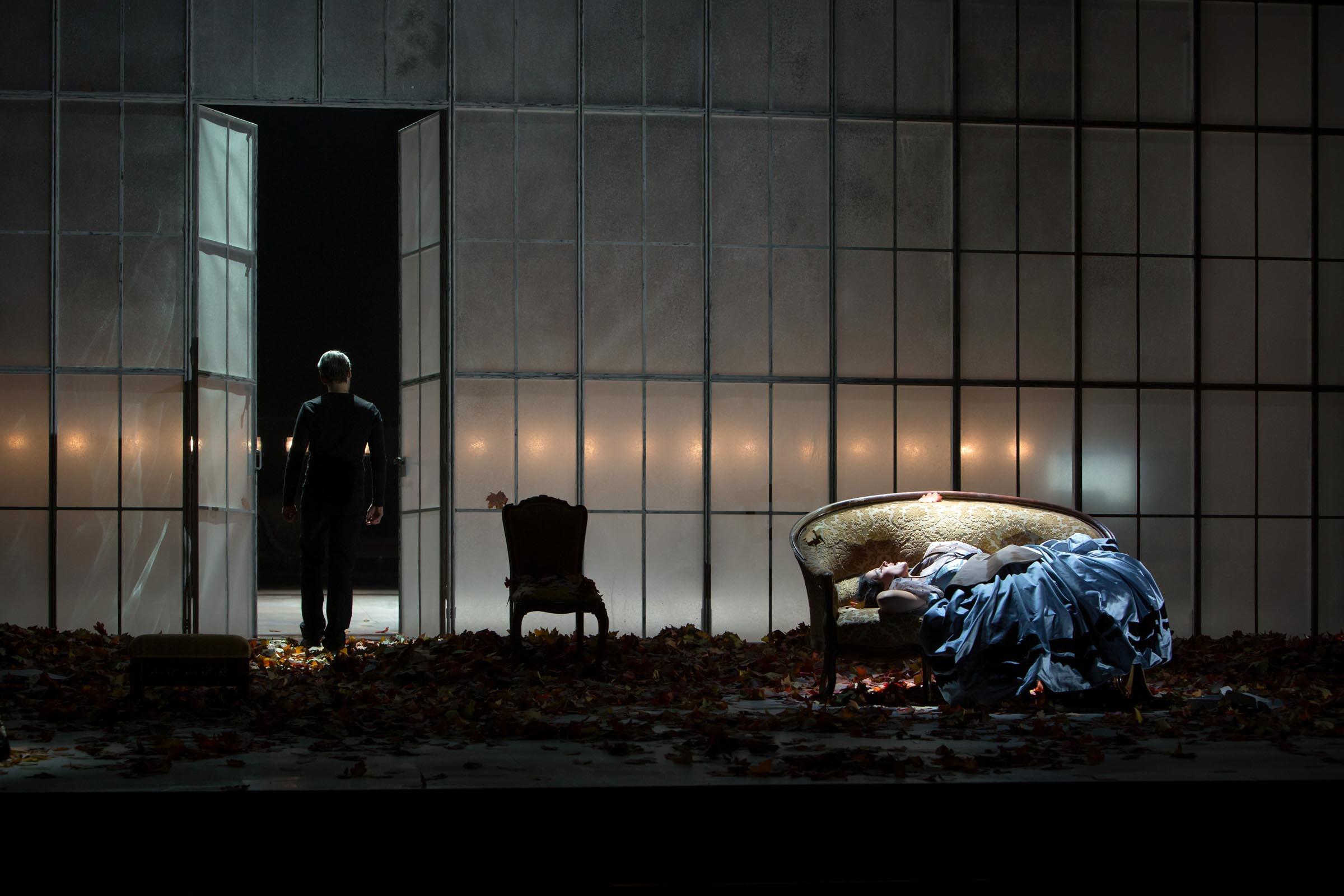Ainārs Rubiķis: Ja, alle Figuren geraten in die Tragödie. Violetta steht natürlich im Zentrum, aber mit ihr sind Vater und Sohn im Konflikt verbunden – und der ist nicht als eindeutig lösbar zu beschreiben. Ich kann das Handeln des alten Germont sehr gut nachvollziehen; er versucht, seinen beiden Kindern, Alfredo und seiner Tochter, ein guter Vater zu sein. Und wenn er zum ersten Mal seinen Sohn wiedertrifft, sagt er: »Oh! Du leidest!«, aber seine Melodielinie verblasst leise. Unvermittelt kommt der Wechsel ins Forte und er fügt hinzu: »Nimm dein Leben in die Hand!« Das kommt ganz plötzlich, militärisch, fast perfekt aristokratisch: »Männer weinen nicht«. Das ist natürlich völlig falsch, aber er fordert Härte des Sohnes gegen sich selbst, unter Berufung auf die Tochter bzw. Schwester. Zuletzt erkennt der Vater, dass er die Liebe und die Beziehung zwischen zwei Menschen zerstört hat und dadurch nicht nur Violetta, sondern auch seinen Sohn verloren hat. Er ist letztlich ebenso ein Getriebener der Umstände …