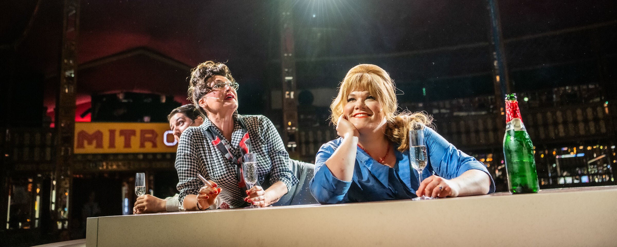 Ach, möchte man schwärmen, wie schön die Zeit, als das Prinzip 'flacher Hierarchien' noch als Kollegialität verstanden wurde – und Teams Kollektive hießen. Dennoch: so sehr Axel Ranischs Inszenierung der DDR-Operette Messeschlager Gisela eine Zeitreise in die 1960er ist – zum Schwelgen in Nostalgie lädt sie nicht ein. Vielmehr versteckt sich in dem Stück eine ganz aktuelle Geschichte über Zusammenhalt, kollegial-charmante Seitenhiebe unter Kolleg:innen und über die Selbstfindung in der ersten Reihe. Mittendrin: Modegestalterin Gisela Claus, die lernen muss, mit der Wertschätzung ihrer Arbeit zu leben. Eine Geschichte, in der sich die Darstellerin Gisa Flake wiederfindet. Im Gespräch erzählt sie über ihre Liebe zur Rolle der Gisela, der Kapitulation vor Komplimenten und wie viel Broadwayfeeling auf der Bühne im Zelt am Roten Rathaus auflebt.