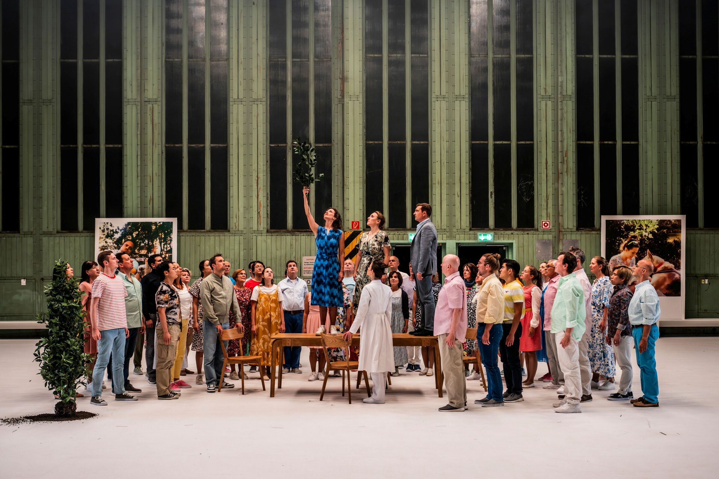 Die Inszenierung stellt die Fragen, zum Teil wörtlich vorgetragen, zum Teil in bildhafter Suggestion, und die Musik antwortet. Mal vorsichtig verhalten, mal selbstreflektierend in sich gekehrt, dann wieder in massiven Chören auftrumpfend, an Gefühl und Empathie appellierend... Eine rundum grandiose musikalische Umsetzung: Petrou besticht von Anfang an damit, dass er stets das passende, zügige Tempo anschlägt. Damit nimmt er dem Stück die gewohnte Schwere und lässt ihm den nötigen Ernst.