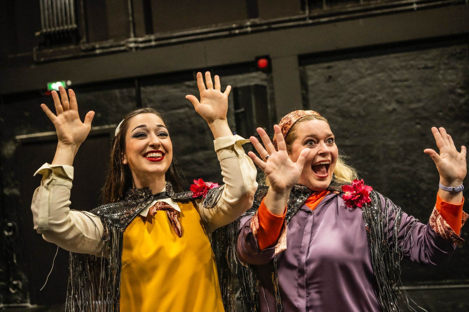 Katharina Fritsch: Dafür haben Material von UĞRAK, dem Beratungszentrum für Migrant:innen, und dem Biografie-Projekt Allein in einem fremden Land – Gastarbeiterinnen aus der Türkei 1962–1973 verwendet. Aber wir haben uns auch mit Hilfe des Vereins Stadtteilzentrum Familiengarten und über die Neuköllner Stadtteilmütter mit Frauen dieser Generation getroffen und bei Auftritten des Operndolmuş unser Publikum dazu eingeladen, mit uns ins Gespräch zu kommen. Mit ungefähr 25 Frauen haben wir direkt gesprochen, ihren Geschichten zugehört und sie in den Stücktext einfließen lassen. Und weil es beim Operndolmuş immer auch um Musiktheater geht, haben uns einige von ihnen die Lieder vorgesungen, die sie in dieser Zeit geprägt haben. Das hat die Musikauswahl für Fatma und Fatoş beeinflusst.