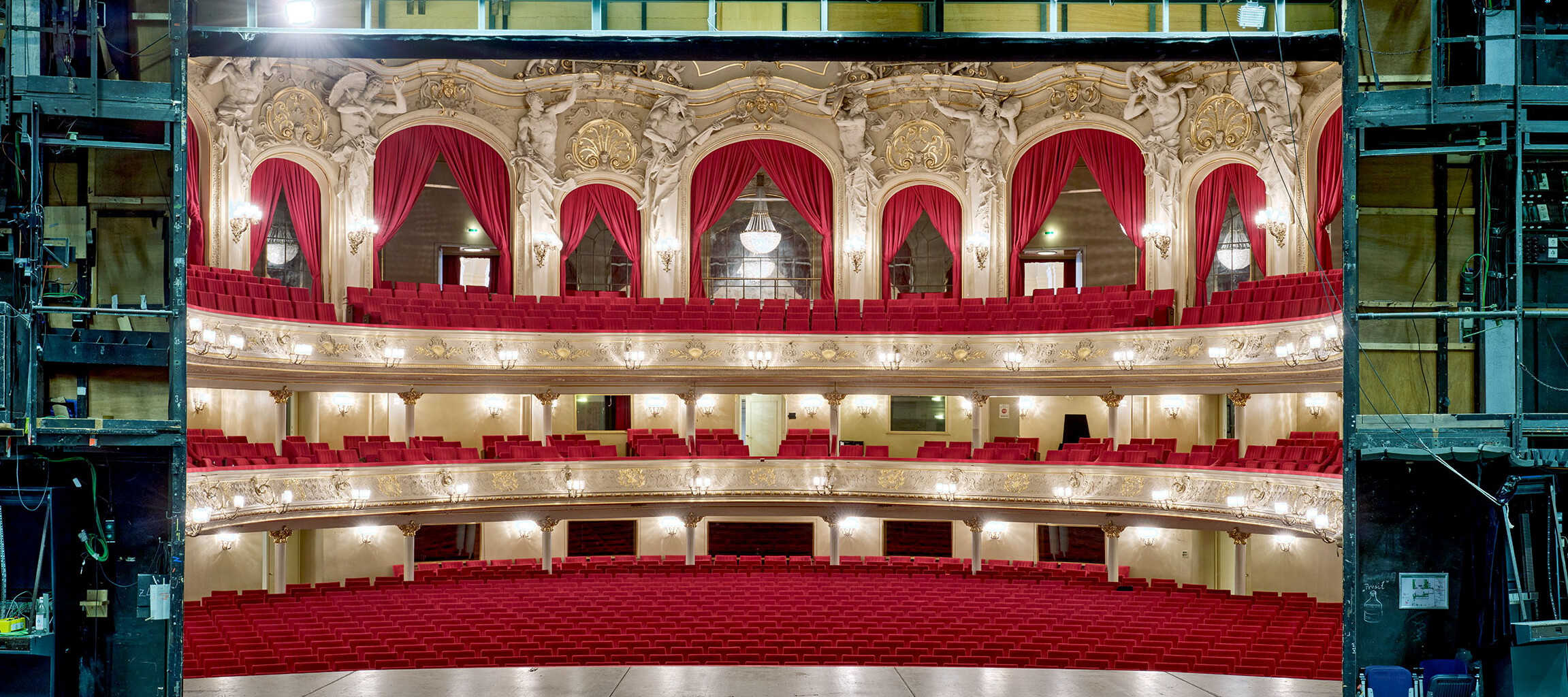 Thomas Florschuetz: Die Brüche sind wirklich spannend, besonders vor dem Hintergrund der dramatischen Zeiten, durch die dieses Haus gegangen ist. In ihrem Mit- und Gegeneinander habe ich sie immer als eine sehr anregende Kraft empfunden. Das Neorokoko der wilhelminischen Zeit, die (teilweise) Zerstörung im 2. Weltkrieg und die Veränderungen und Umbauten in den 1960er Jahren – all das kann man ganz gut im Foyer sehen, in dem aus all diesen Epochen Elemente aufeinandertreffen – sowohl Historismus und DDR-Moderne nach Entwürfen von Kunz Nierade als auch die Umbauten im Foyer durch Stephan Braunfels nach der Jahrtausendwende.