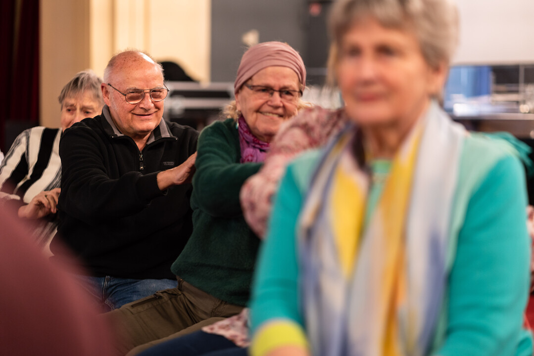 Seit der Spielzeit 2021/22 kommen Menschen mit Demenz und ihre Angehörigen jede Woche zu uns in die Komische Oper Berlin. Hier wird gemeinsam gesungen, das Tanzbein geschwungen, sich erinnert und erzählt. In herzlicher Atmosphäre machen wir uns gemeinsam mit den Teilnehmer:innen auf die Suche nach der Musik ihres Lebens und singen, was die Seele bewegt. Von Volksliedern, Schlagern, Opern-Hits, Rock ‚n‘ Roll und Lagerfeuermusik ist alles dabei. Wir gestalten gemeinsam Quality-Time für Menschen mit Demenz und ihre Angehörigen, denn Musik belebt, löst Erinnerungen aus und lässt Kommunikation zu. Unser Motto: Wir machen es uns schön!