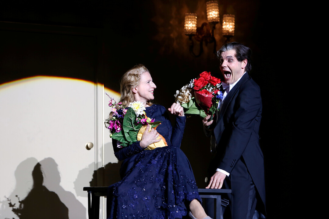 Vorhang auf für: Dagmar Manzel und Max Hopp! Sie spielt: Manon Cavallini, Operettendiva, ihren Verehrer Raoul Severac, und den Vater von Lucy, ihrer Tochter – er spielt: eben jene Lucy sowie alle fünf Liebhaber der Cavallini und Lucys Hausfreund obendrein! In allen weiteren Rollen: Dagmar Manzel und Max Hopp! Eine atemlose Tour de Force, bei der das Orchester unter Adam Benzwi mit einem Feuerwerk an Märschen, Walzern und Chansons aus der Feder von Oscar Straus ordentlich einheizt.